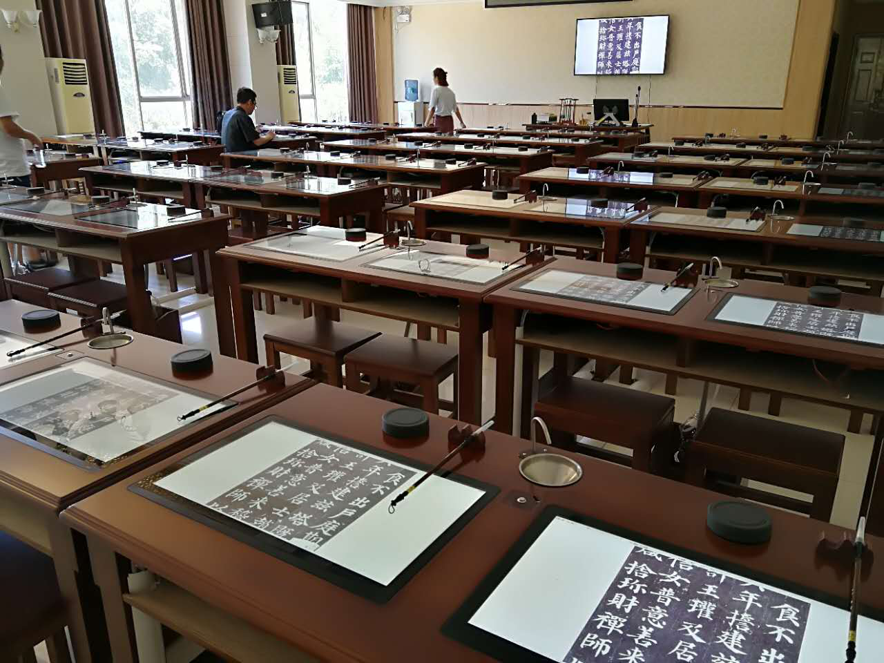 近日,喜逢湖北省第九届中小学书法教师培训圆满结束,目前中国最大的书法数字化标准教室也落户湖北宜城翰墨书法培训中心,正式开通授课,可以同时容纳84人上课,标志着湖北省书法教育和推广步上了一个新的台阶。
